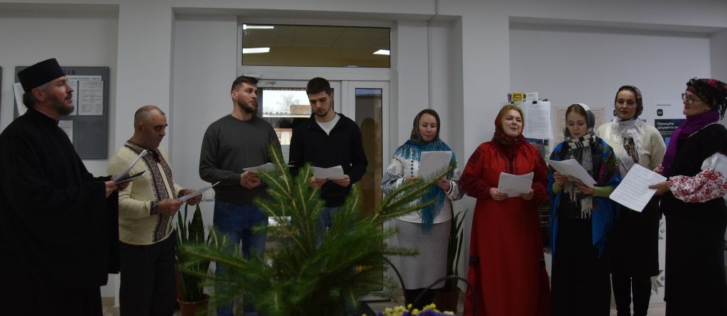 Файл:Колядники в адмінбудівлі Носівської міської ради, грудень 2025.jpg